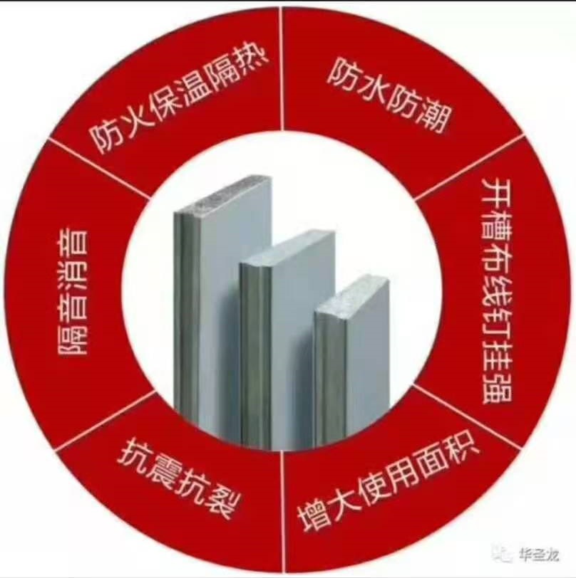 以纤维增强硅酸盐板为面板,中间填充轻质芯材,一次复合成型的非承重轻质复合墙材,环保,轻质高强,隔热隔音,防水,施工便捷。